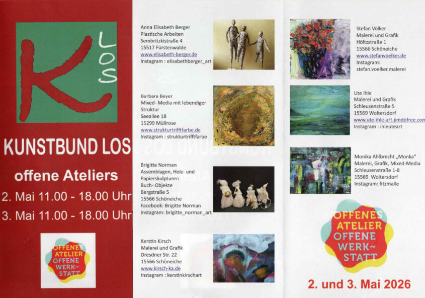 I am a member of the Kunstbund LOS and I`ll opening my studio on the first weekend in May to guests.